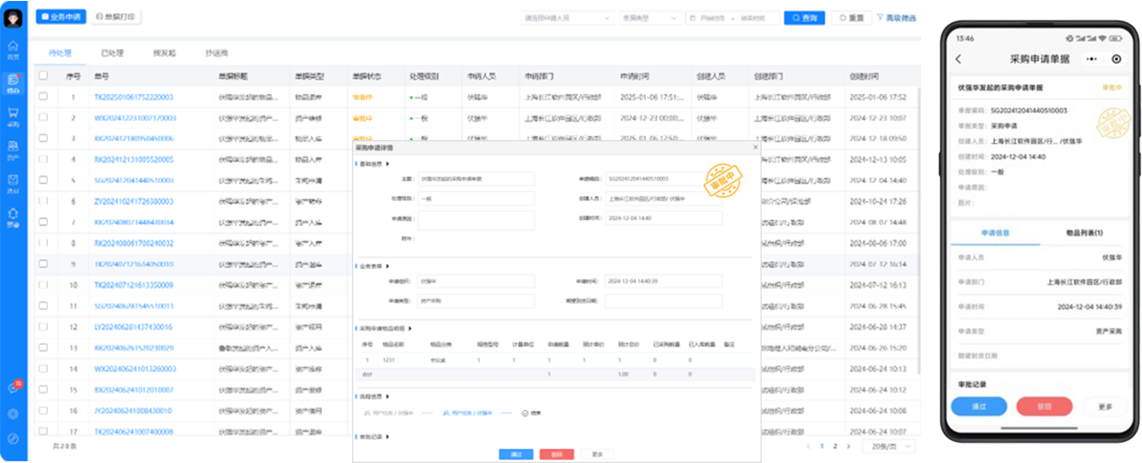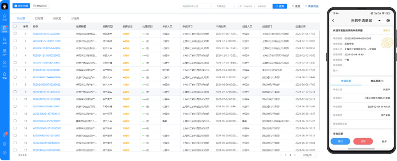 • 根据各个业务类型不同自定义审批节点配置进行审批(通过、驳回、转办撤回、催办)