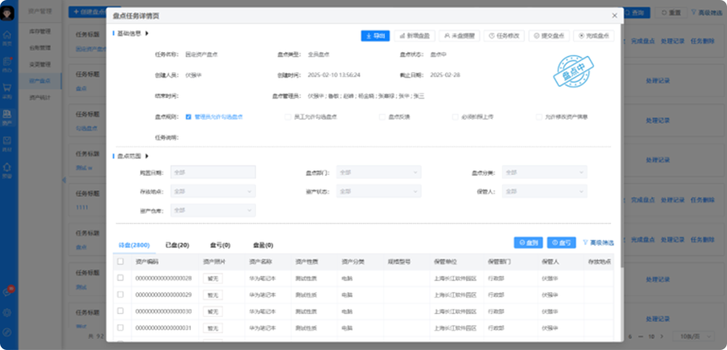 盘点管理支持二维码、RFID标签、全员盘点等多种资产盘点方案丰富且智能化的盘点方式可大幅度提高盘点效率,帮助企业进一步了解资产真实情况